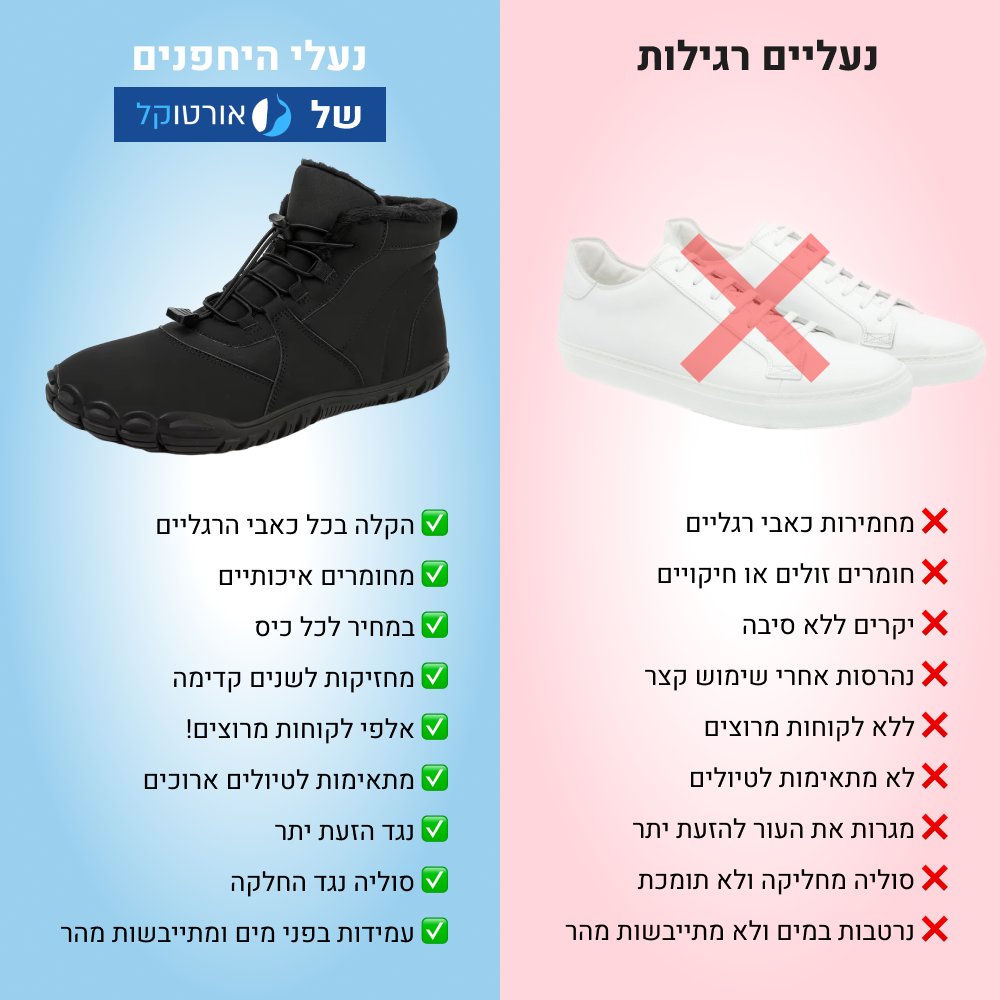 אורטוקל ברפוט סנואו - נעלי יחפנים אורטופדיות להקלת כאב גם בחורף