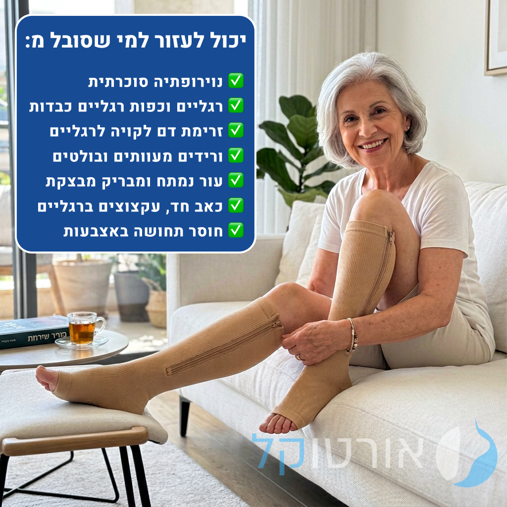 - ✅ הקלה משמעותית בכאבי רגליים, קרסוליים ושוקיים