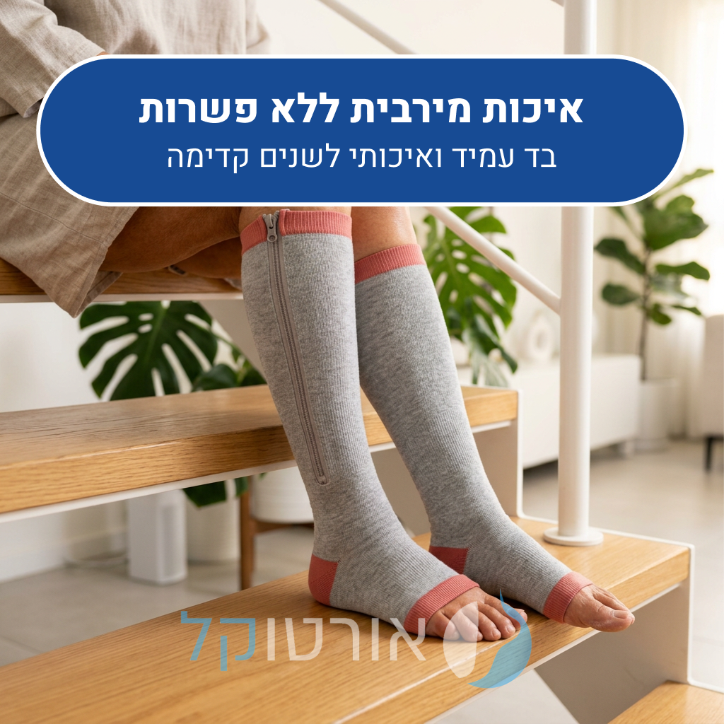 - ✅ הפחתה ניכרת בנפיחויות ובתחושת כבדות לאחר עמידה ממושכת