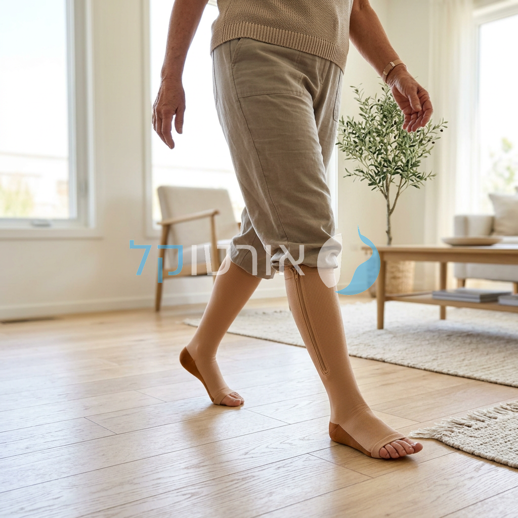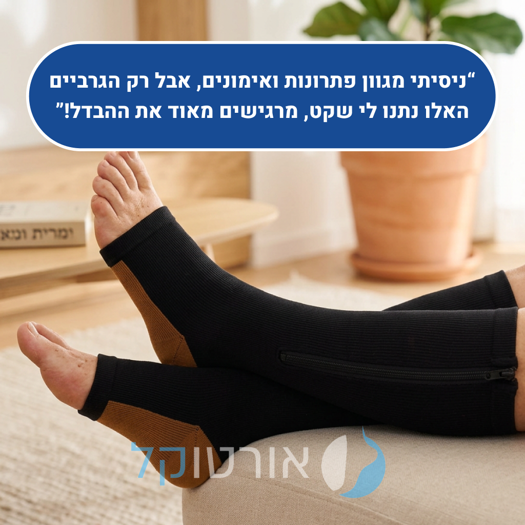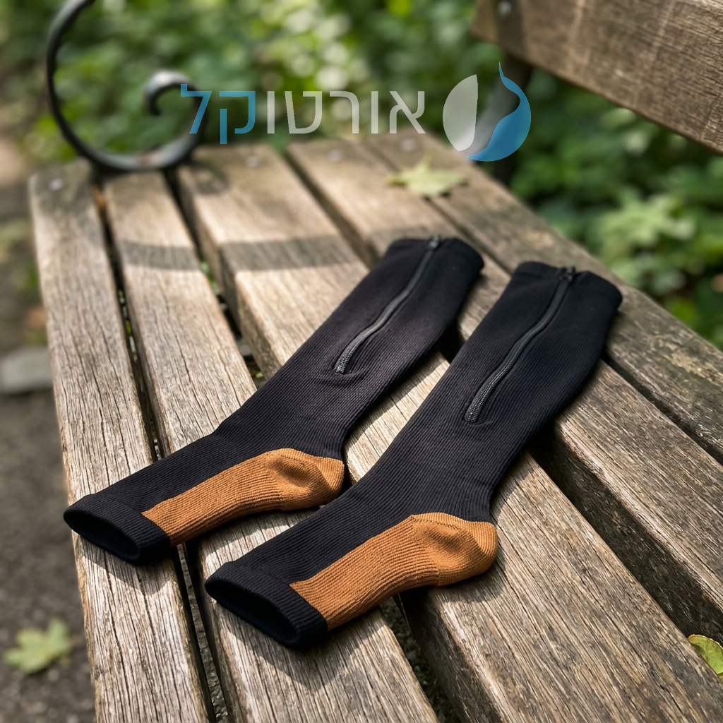 - בגרביים רגילות: אין חלוקת עומס. לעיתים הן לוחצות מדי בחלק העליון ויוצרות חסימה, או שהן רפויות מדי ומחליקות בתוך הנעל. הן לא מסייעות לגוף להתמודד עם העומס המופעל על הרגליים.
